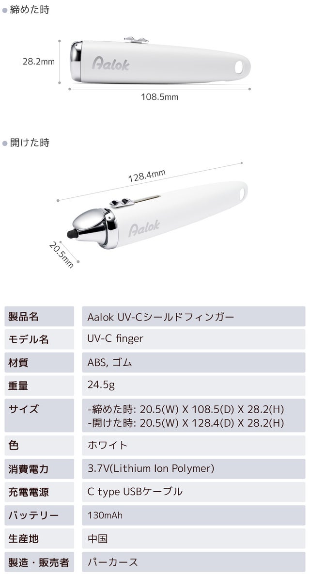 ※UV-Cシールドフィンガーは USB タイプCケーブルで充電可能です。