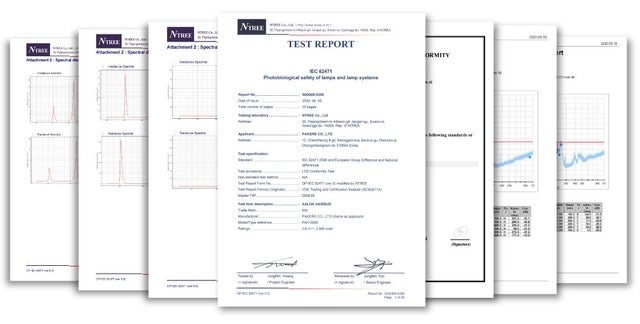 ヘアバッドはLEDランプが視力に無害であることを証明するために、網膜青色光リスク、網膜熱リスクをテストを受けて最高等級での安定性を認証しました。