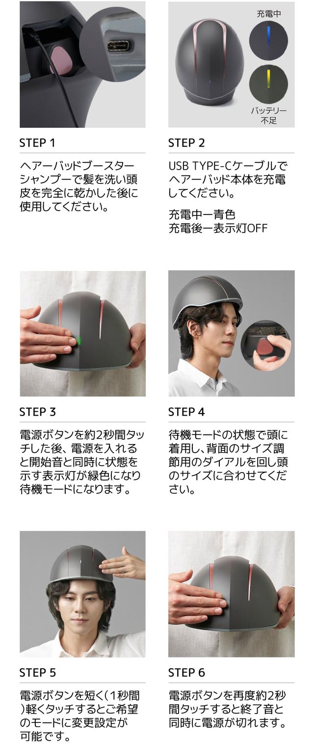 ヘアバッドのは頭皮の状態に応じてモードを変えなkがらご使用いただけます。
