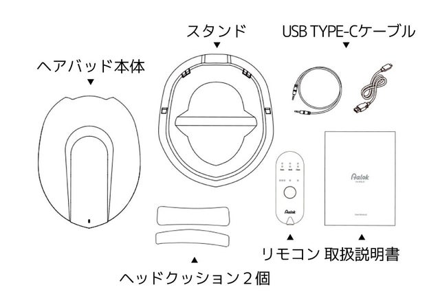 ヘアバッド本体+スタンド+ヘッドクッション2個+リモコン+充電ケーブル