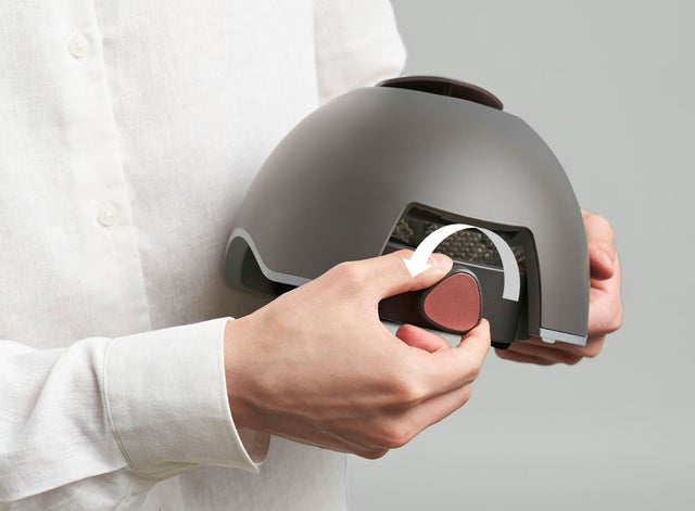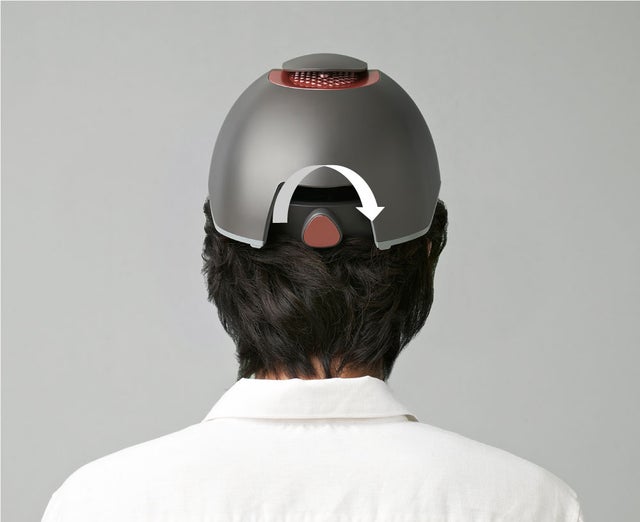 ヘルメットの後ろにある調節ダイアルを回して適切にフィットさせ、お使いください。頭皮にしっかり密着して効率よくケアすることができます。