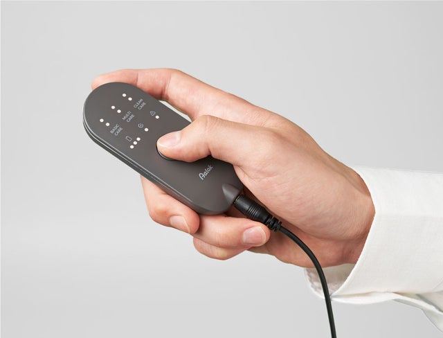 ヘルメットの形で製作されたヘアバッドは、製品を装着したまま操作するには不便な点があり、リモコンを搭載しました。