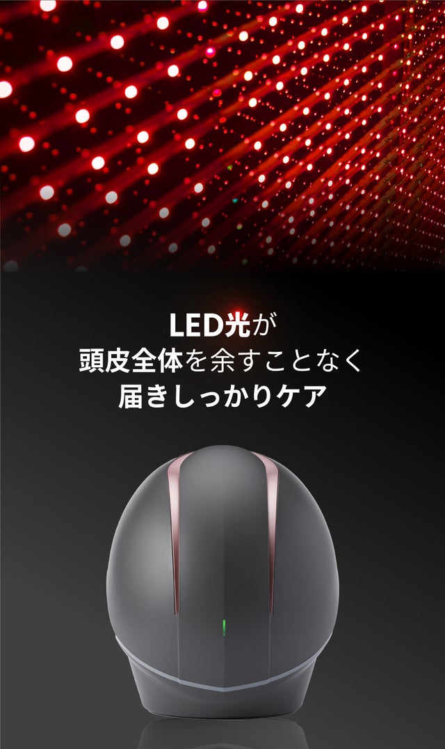 地肌にLEDライトの波長の刺激と頭皮をケアし、健康な頭皮をサポートします。