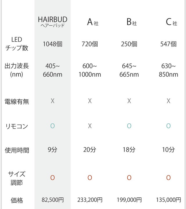 業界でも圧倒的なヘアバッドのLEDチップ数を搭載しております。