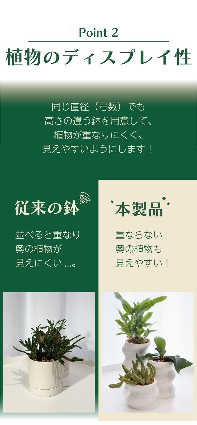 - 鉢の高さに選択肢があり、ディスプレイ性が良い!