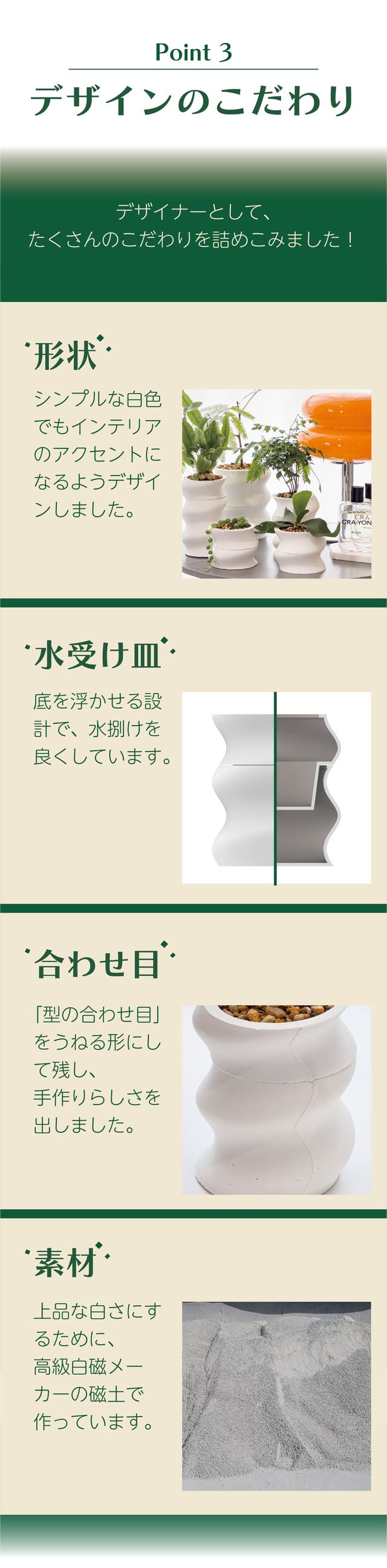 本製品には、私がいくつもの植物を育てる際に生じた思いをこめました。