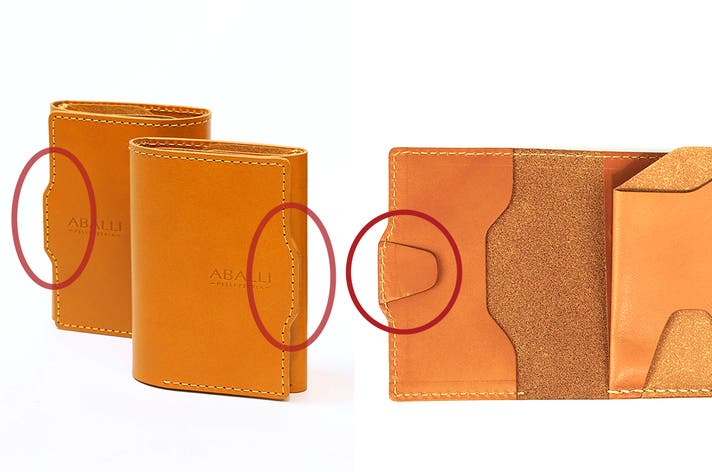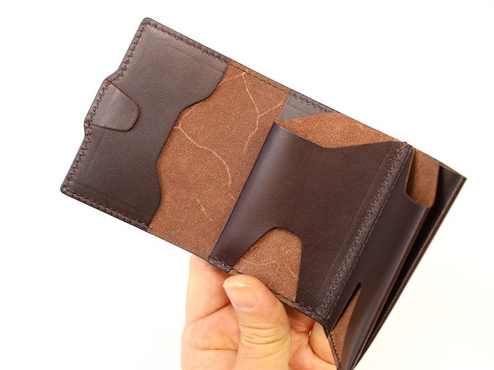 見た目以上に手間を惜しまず製作しているこの無造作ミニウォレット。