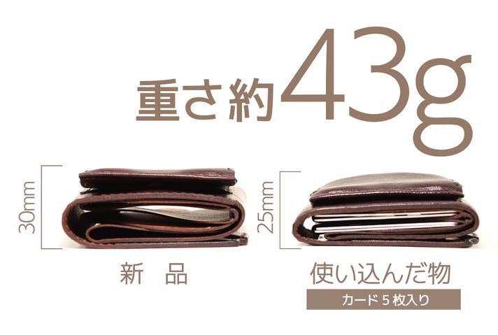 この財布で使用している革は、国内最大産地の姫路産の気品のあるタンニンなめしオイルスムース牛革を使用しております。