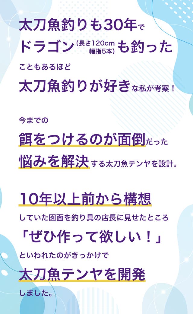 太刀魚釣り初心者から大会出場者まで、自信をもっておすすめできるアイテムです。