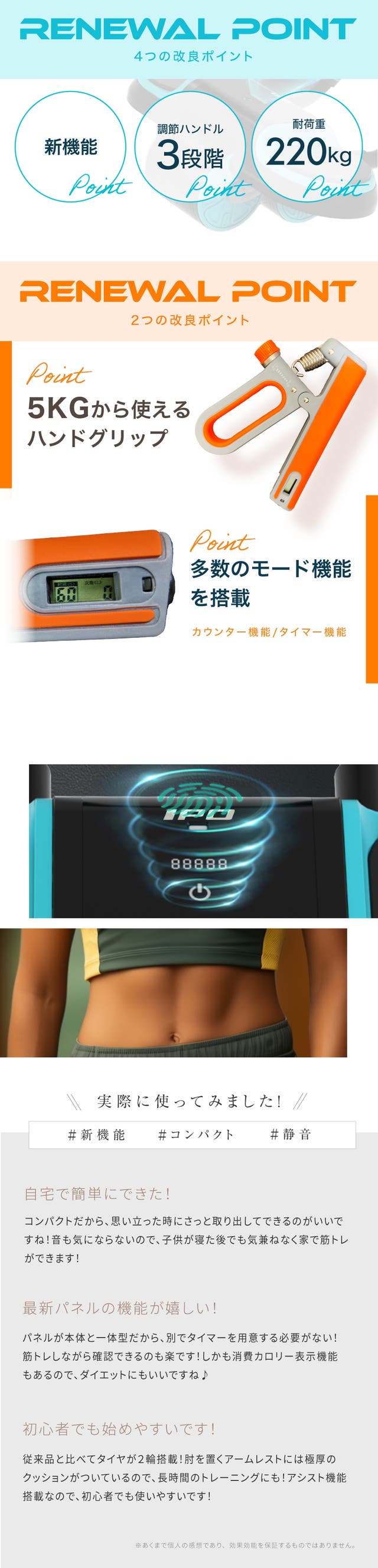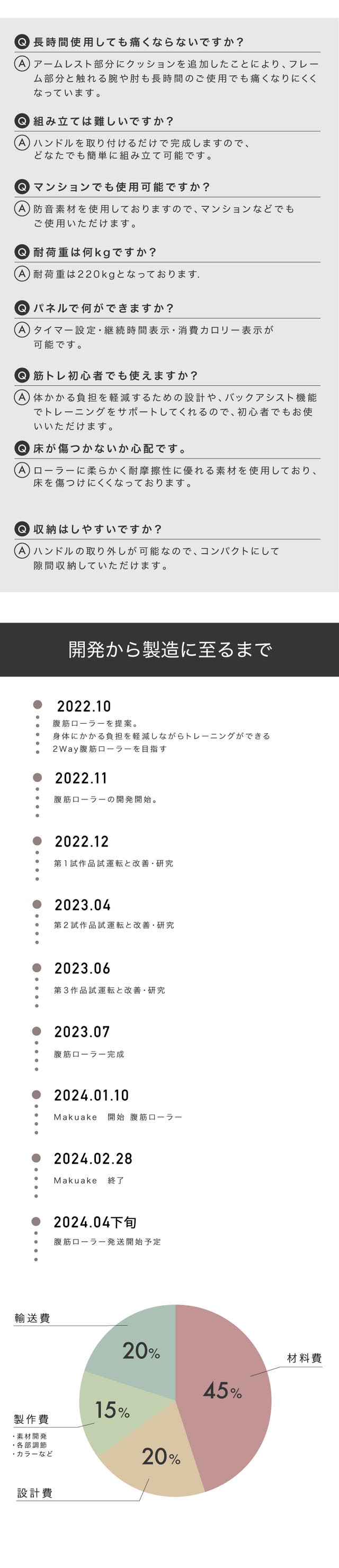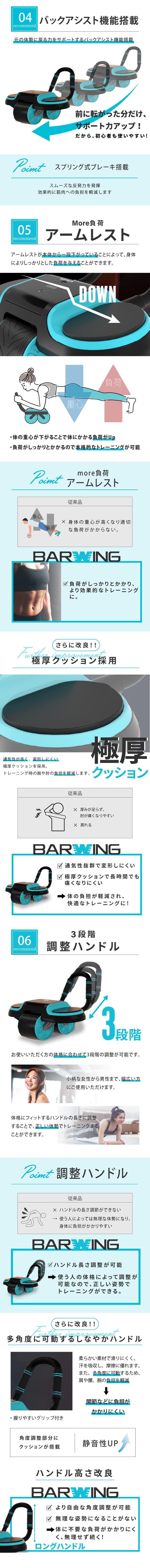 従来の腹筋ローラーだとアシスト機能が弱く 長く続けられないそんな声が多くあり 今回多くの人が長く続けられる商品を提供したく 今回販売にいたりました。