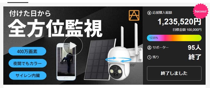 95名の皆さまに応援購入いただき、目標の1235%を達成することができました。