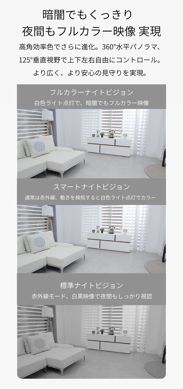 2つの眼でかわいい瞬間を見逃さず、子供やペット、そして部屋まるごと見守ります。