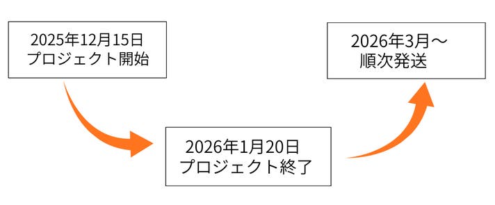 このプロジェクトはAll in型です。目標金額の達成に関わらず、プロジェクト終了日の2026年01月20日までに支払いを完了した時点で購入が成立します。