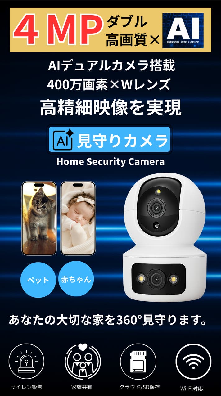 【ダブルレンズ搭載】1台で広く・クッキリ見える新世代スマートカメラ
