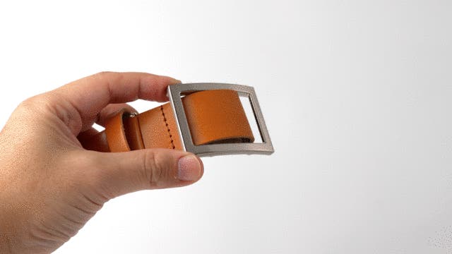 ピンタイプのバックルを使用したベルトは「ベルト穴で調整」のため2.5cm / 1インチ単位での調整となります。これだと緩めるとゆるゆるになってしまいますよね。また使用頻度によりベルト穴部分が劣化します。