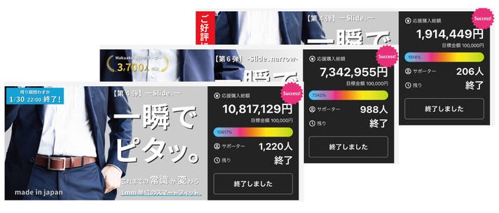 スライドシリーズはこれまで2モデルを販売し、2400名のサポーターさまから総額2000万の応援購入金額をいただきました!