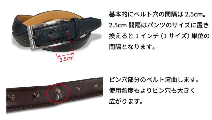 ベルト穴、バックルピンがなくても大丈夫!ベルトがきちっと止まる理由がこちら。