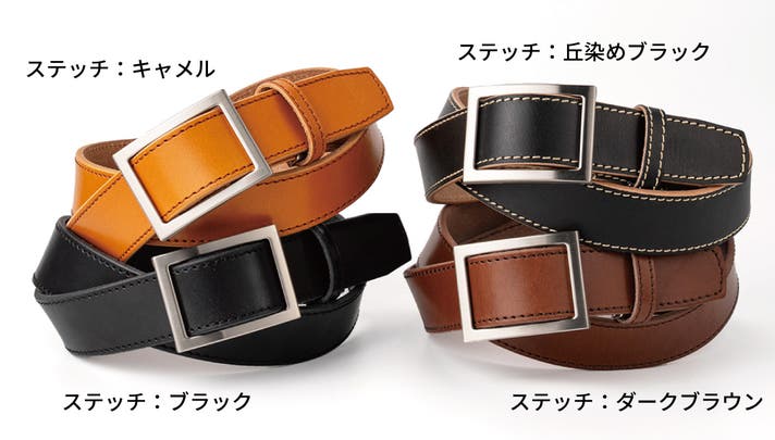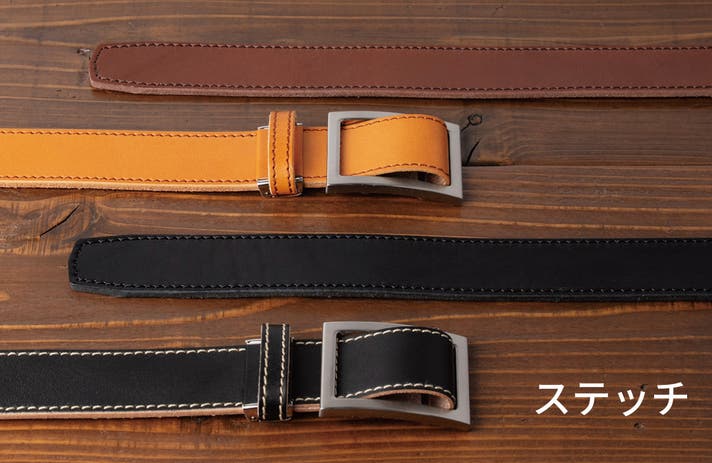 ベルトのまわりに ぐるっと ステッチをいれた王道デザイン。ステッチがベルトの表情を引き締めた印象を与えてくれます。