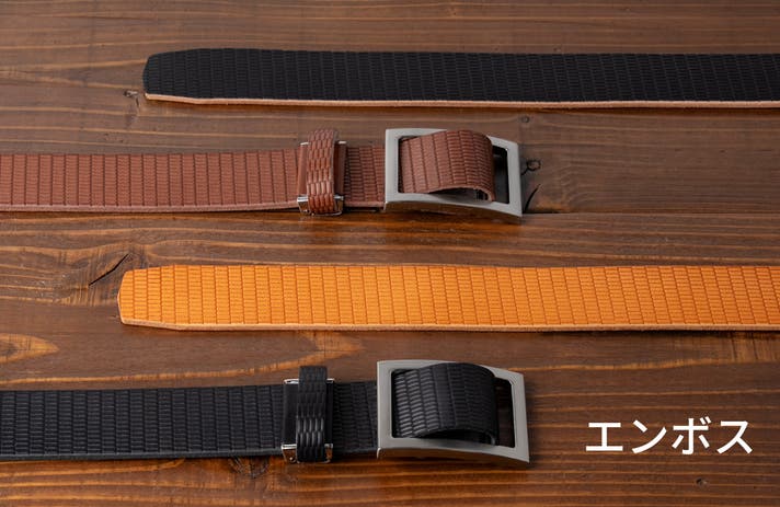 リザード調のエンボス加工が施され、ウエストマークをおしゃれに演出するエンボスタイプ。