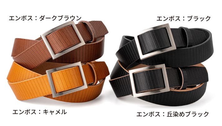 毎日使うベルトだからこそ、楽しんでお使いただくために「4色」「3デザイン」の12通りをご用意しました!