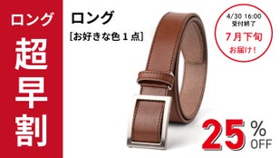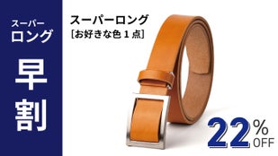 通常のロングサイズは、ウエストサイズが105cmまでの対応ですが、「もっと長いベルトはないですか?」「115cmまで対応サイズを作ってほしい」などお声をいただいておりましたので、メーカーとしてお客様の声にはできる限り応えたい、そしてより多くの方にベルトを楽しんでもらいたい思いから「ロングサイズ:115cm対応」「スーパーロング:145cm対応」と従来よりも長いベルトをご用意しています!ロングサイズ・スーパーロングともに、ベルトの革は一枚革で繋ぎ目もありません。レギュラーサイズと同様の仕様となっております。