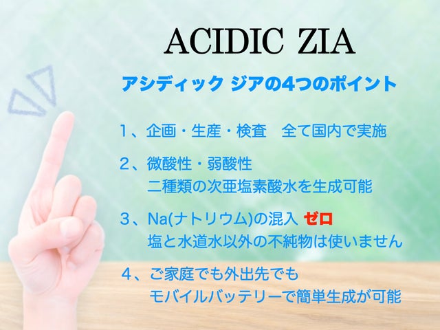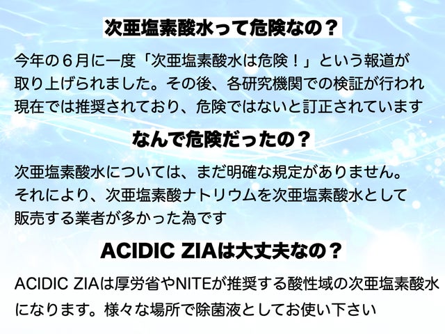 ACIDIC ZIAはAcidic(酸性)のZIA(次亜塩素酸水)