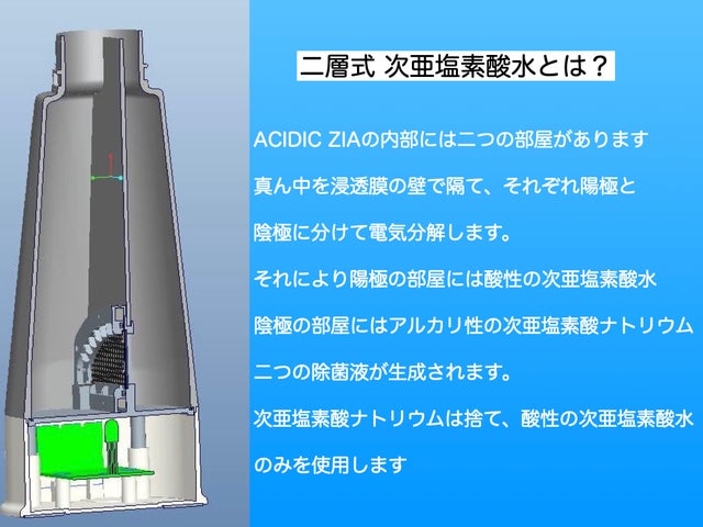 『ACIDIC ZIA』は、独自開発した二層式の次亜塩素酸水生成器です
