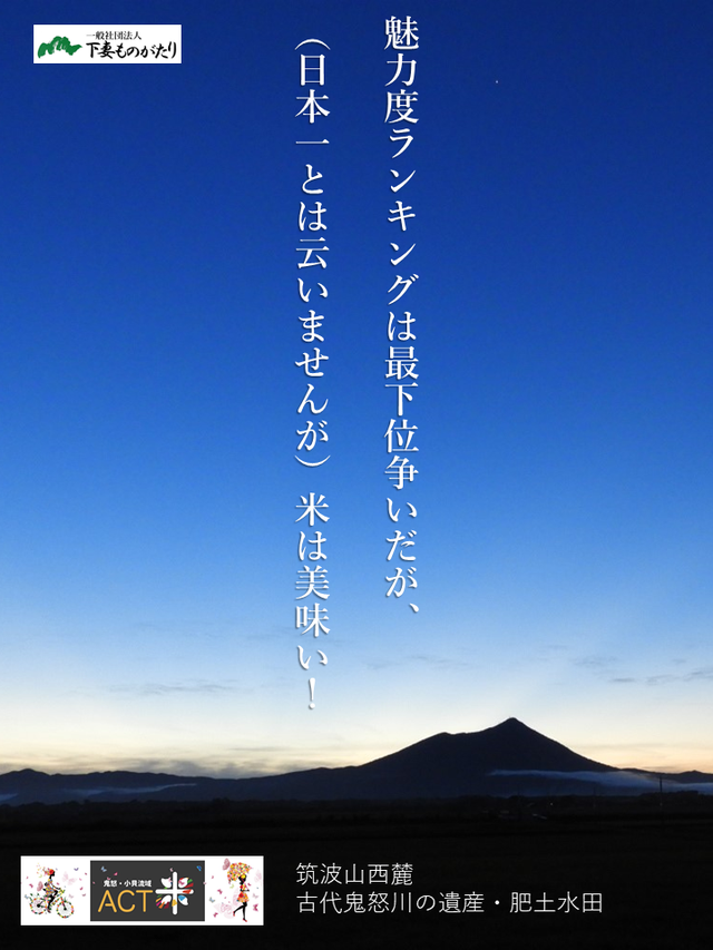 事業の主催者は、一般社団法人 下妻ものがたり ACT米部会です。