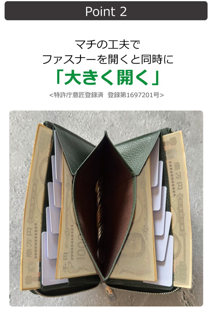 - 「特許庁意匠登録済」のマチ構造で大きく開き見やすく出し入れ快適 しなやかなイタリア製本革を使用