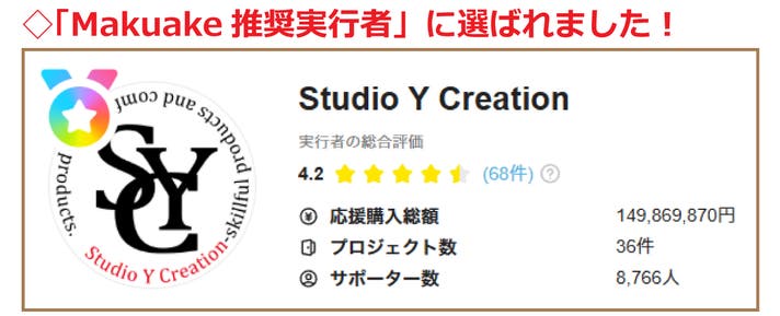 また、弊社は『Makuake推奨実行者』にも選出されております。