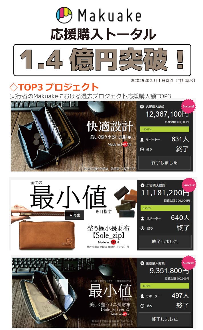 過去プロジェクトで約8700名を超える方から応援購入をいただき、累計金額1億4千万円超えを達成させていただきました。