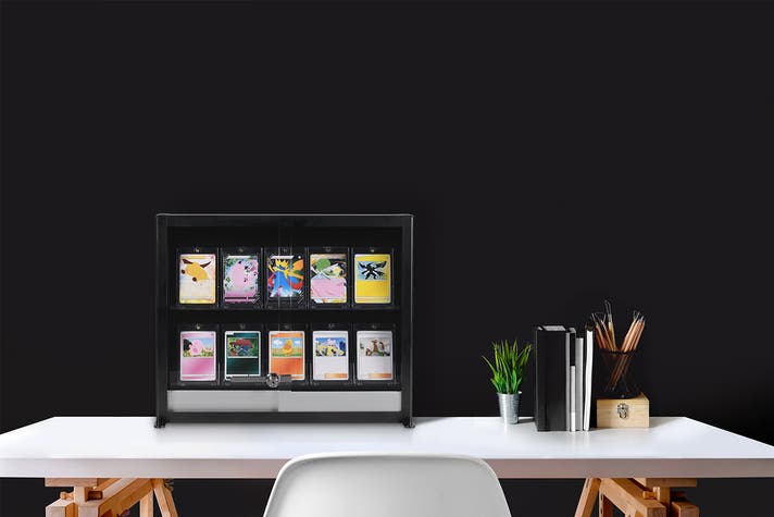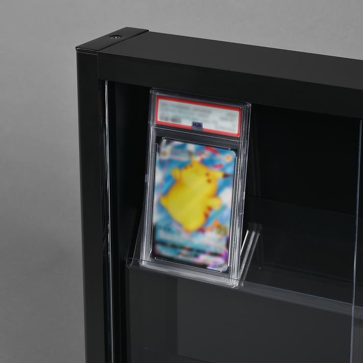 自宅のコレクションを飾ることを考慮し、レールは最大12mmの厚さまで対応。各社サイドローダーやマグネットケース、PSA鑑定カードなどをしっかりと設置できます。