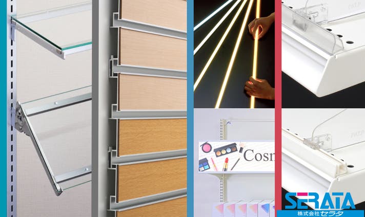 店舗業界に係わり1世紀以上、店創りのノウハウを活かしたオリジナルの店装資材・LED照明・LEDポスター看板・電源レール、棚受けや棚柱、プライスレールなど、売場に関する多彩な製品を提供しています。