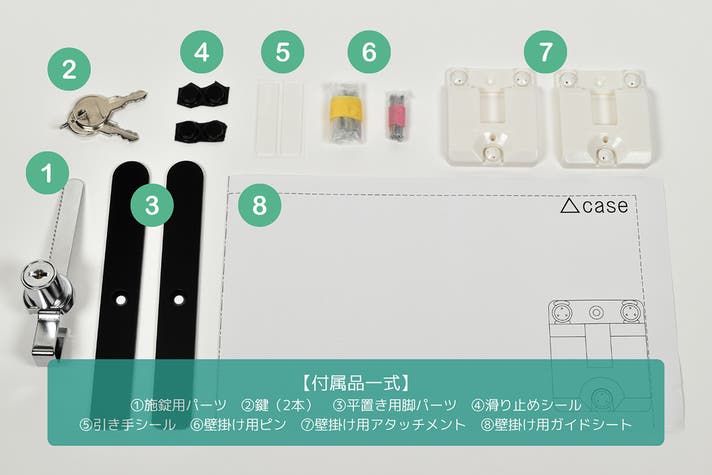 A. 付属の鍵パーツは、店舗什器の雰囲気を楽しむための簡易的な仕様です。盗難防止を目的としたものではありませんので、あらかじめご了承ください。