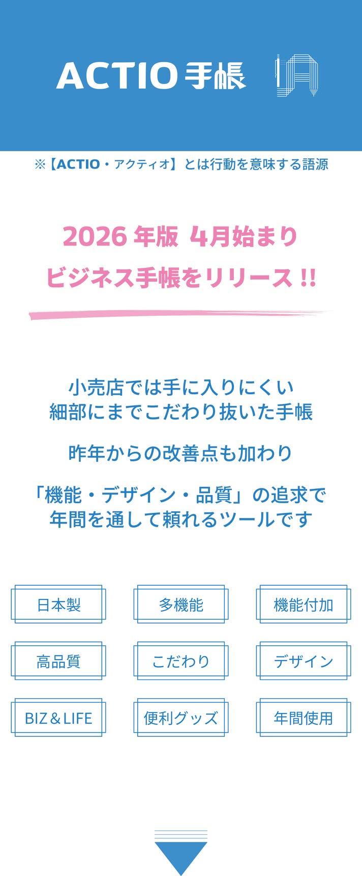 「Makuake(マクアケ)」は、実行者の想いを応援購入によって実現するアタラシイものやサービスのプラットフォームです。このページは、 プロダクトカテゴリの 「開きたいページへ瞬間移動!月間と週間の併用がラクになる『4月始・ACTIO手帳』」プロジェクト詳細ページです。