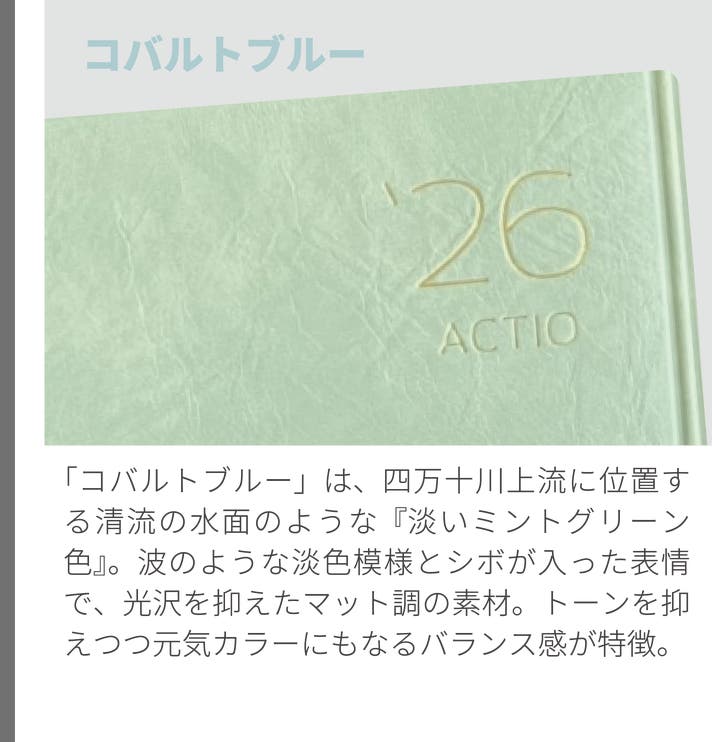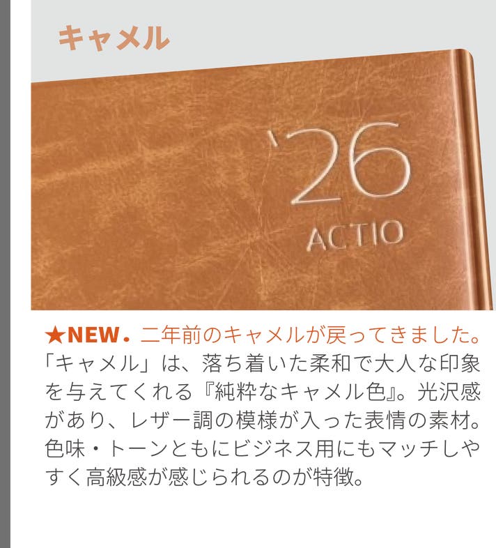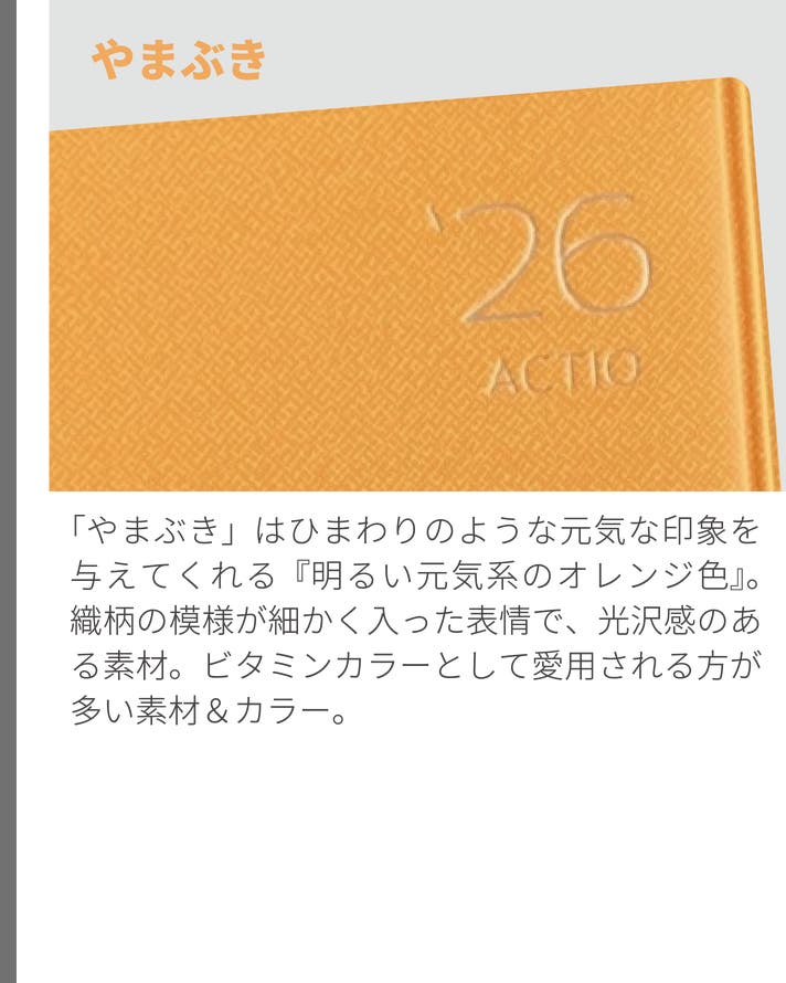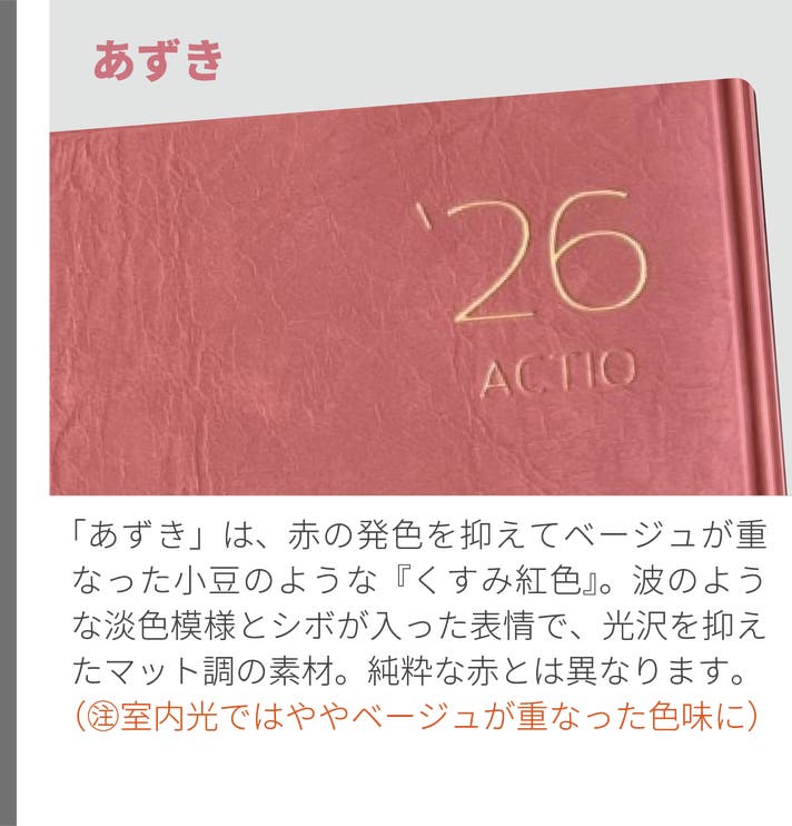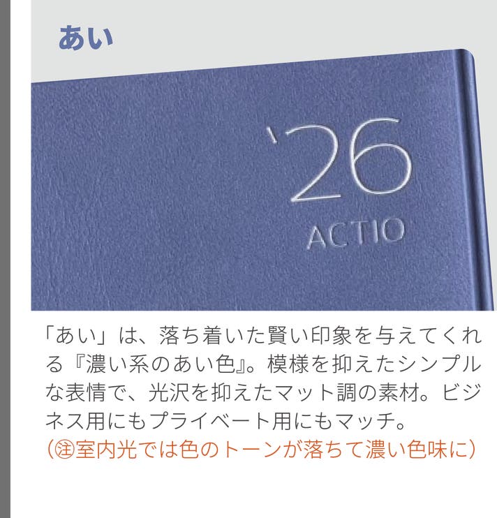 2026年4月始・ACTIO手帳 デジナーレ、A5サイズ(1冊:9色から選択)