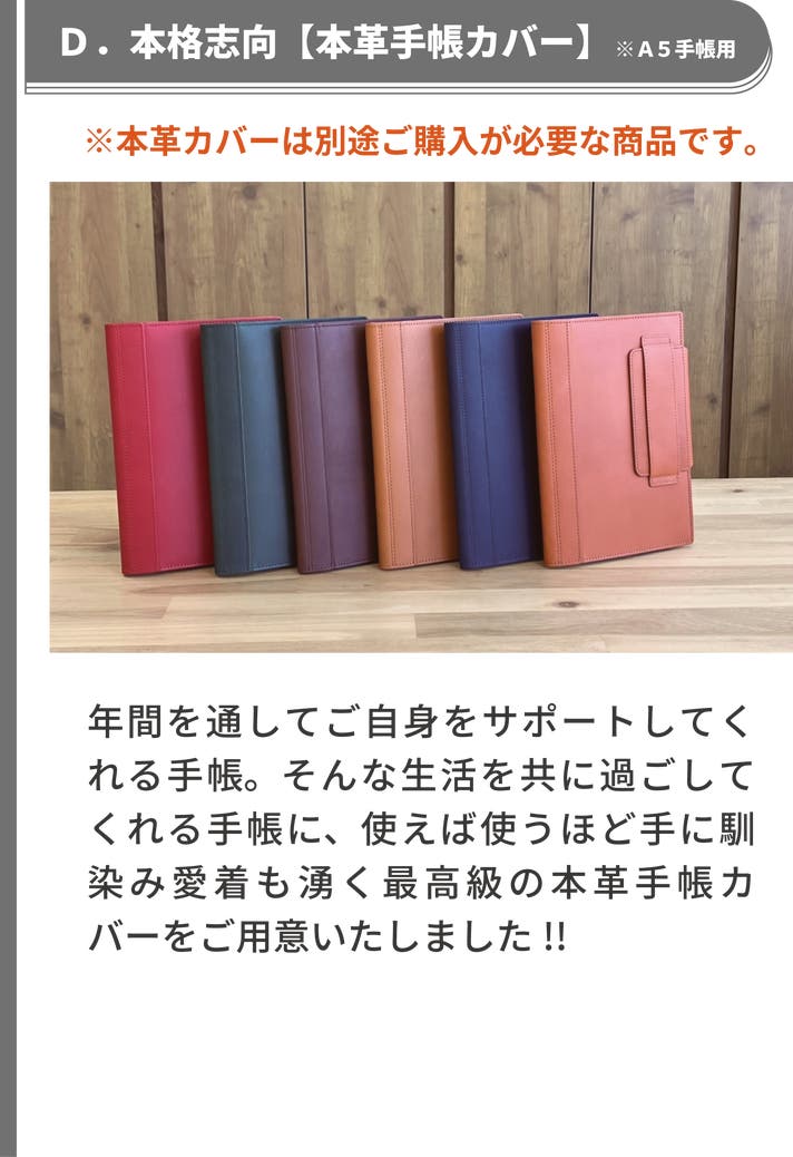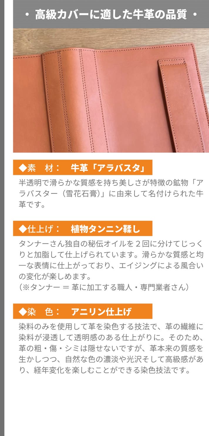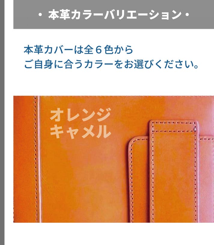 ◆表紙カラー:本革カバー6色から選択可能(第二希望までご選択)。ただし、製造発注時におけるカラー素材屋さんの在庫状況によって、在庫超過分のご注文についてはカラー変更をお願いする場合がございますので、第二希望までご選択をお願いします。予めご了承ください。