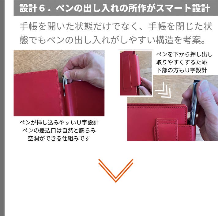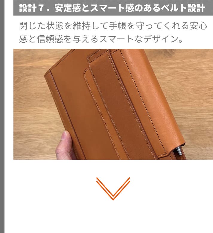 ※手帳開閉の際のしなりや見開きがスムーズになるよう、各パーツや接合部の革の厚みを微調整しました。