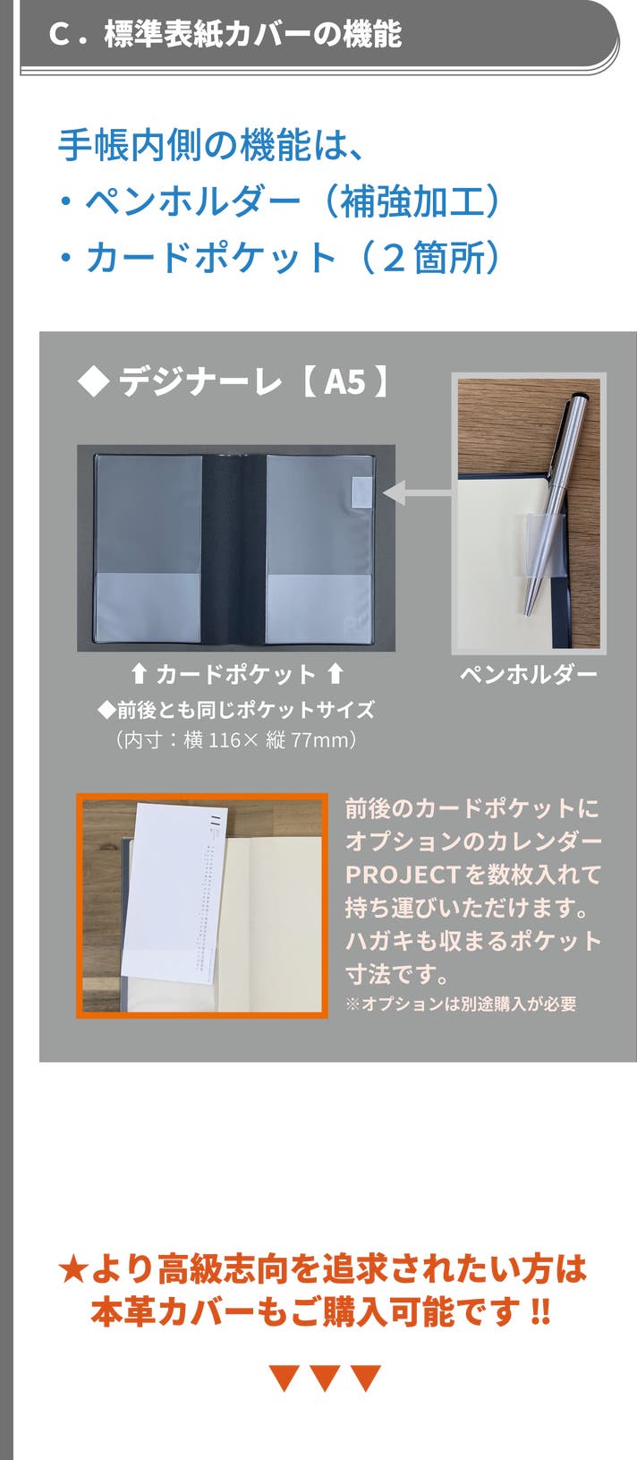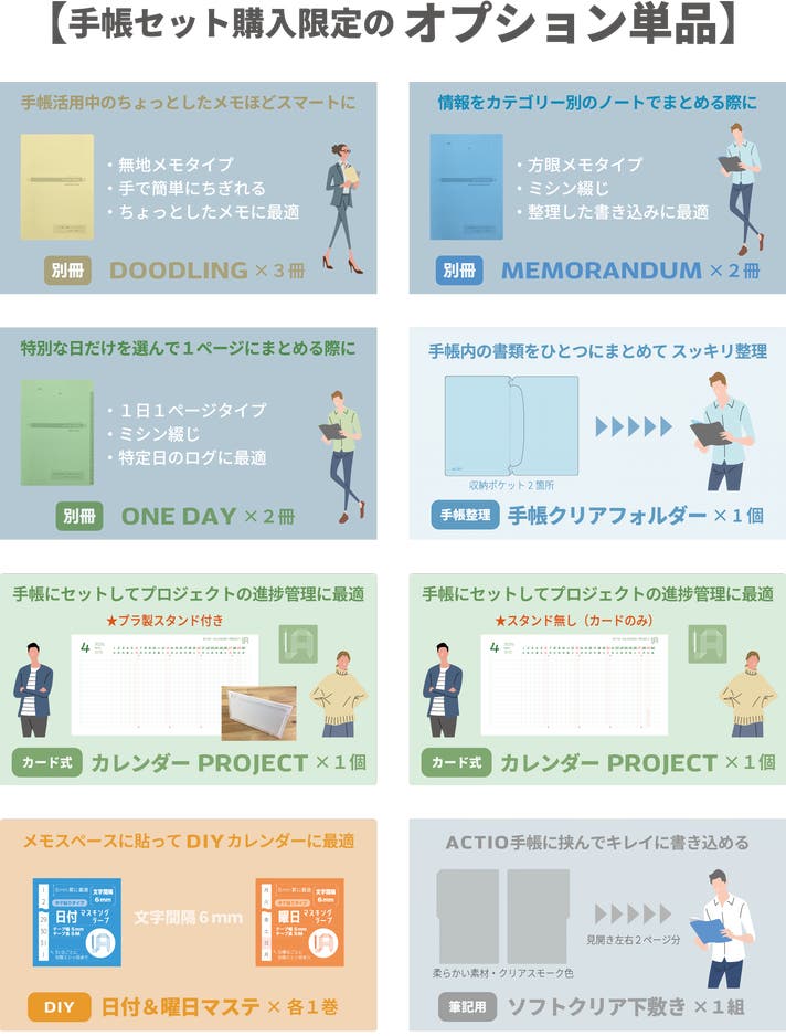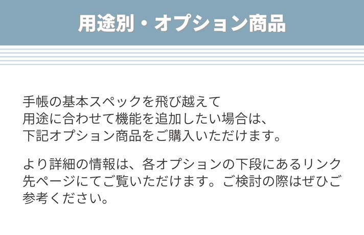 - 手帳活用をグレードアップ| 求める用途の機能を手帳に加えることができる豊富なオプション商品‼