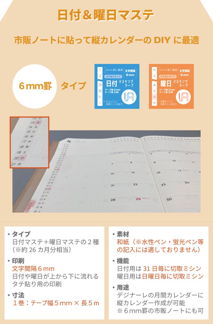 6.日付マステ&曜日マステ(各1巻)