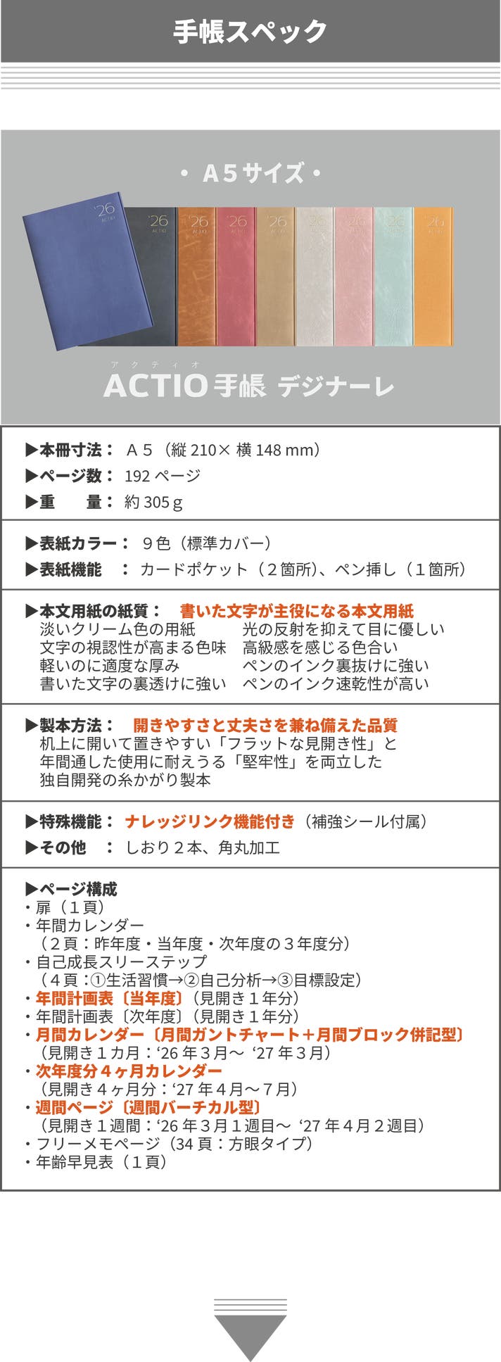 ‘26年4月始・ACTIO手帳デジナーレ/A5(1冊)◆スペシャル特典つき