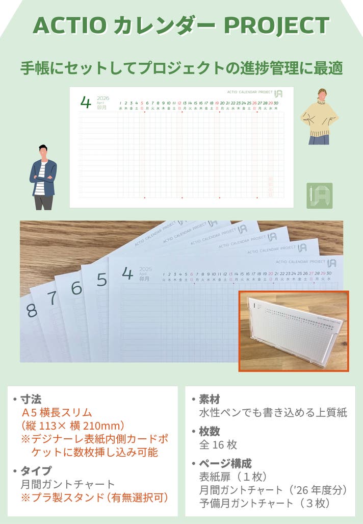 ACTIOカレンダー PROJECT(月間ガントチャート・プラ製スタンド付き)×1個をお届け。