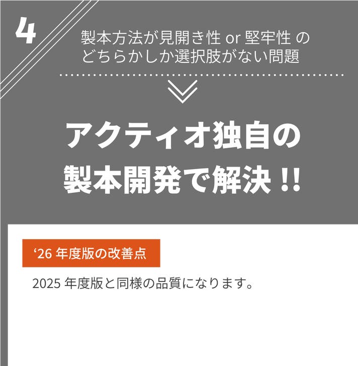 また、標準カバーが不要な方は、カラー選択肢の中から「本冊のみ」をご選択ください。ただし、’26年版の製造コストに変動がないため価格の変動はございません。予めご了承ください。