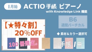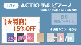 当企画メイン商品は、新商品の「ACTIO手帳 ピアーノ」です。