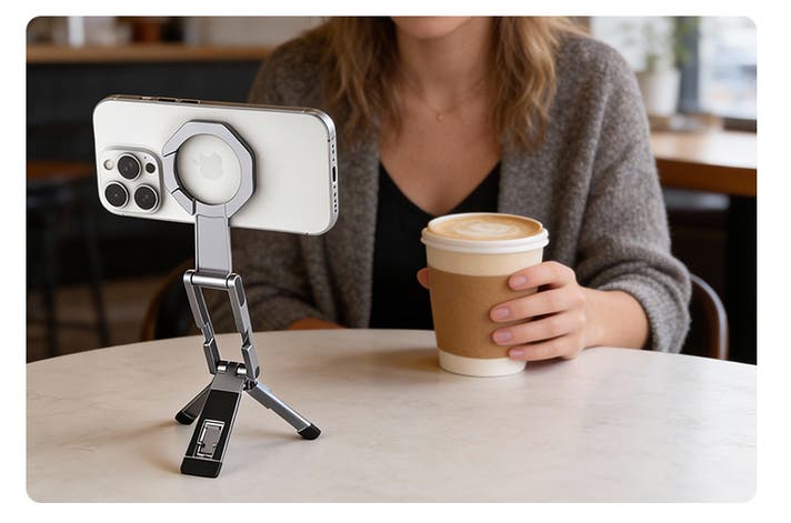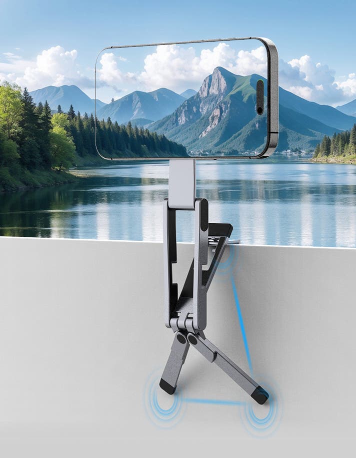キッチン、ガレージ、オフィスなど、さまざまな場所に固定でき、両手を自由にして撮影できます。これまで三脚を置けなかった場所でも、簡単に撮影環境を作れます。