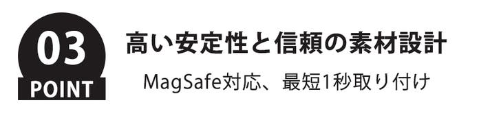 MagSafe対応でスマホにワンタッチ装着。自動で位置が整い、水平・垂直どちらの向きでも安定してしっかり固定できます。