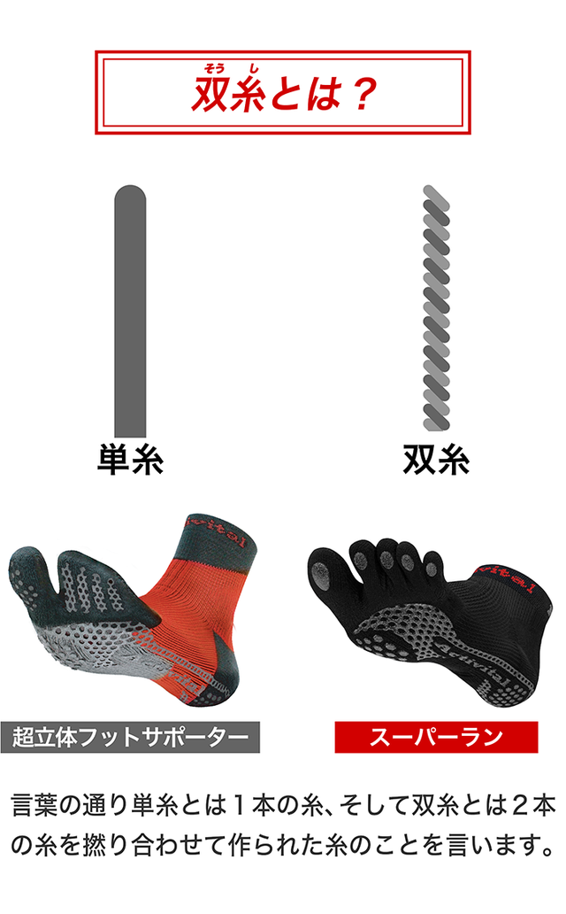 - 累計20万足売れたサポートソックスの5本指&強化糸のショート丈で完全リニューアル!