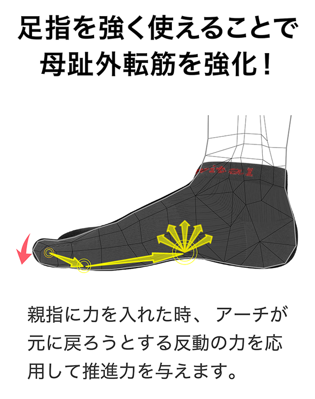 - 指を効果的に使え、足裏のグリップで動きのパフォーマンスもアップ!