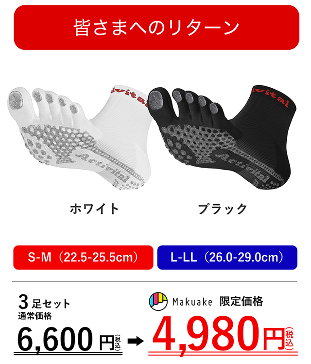 「Makuake(マクアケ)」は、実行者の想いを応援購入によって実現するアタラシイものやサービスのプラットフォームです。このページは、 プロダクトカテゴリの 「【Activital】スーパーファイブ|5本指タイプ!足首を保護し全ての指を使え」プロジェクト詳細ページです。
