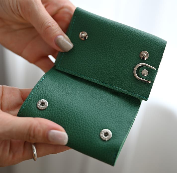 素材:シュリンクレザー、金属(リング・スナップボタン)